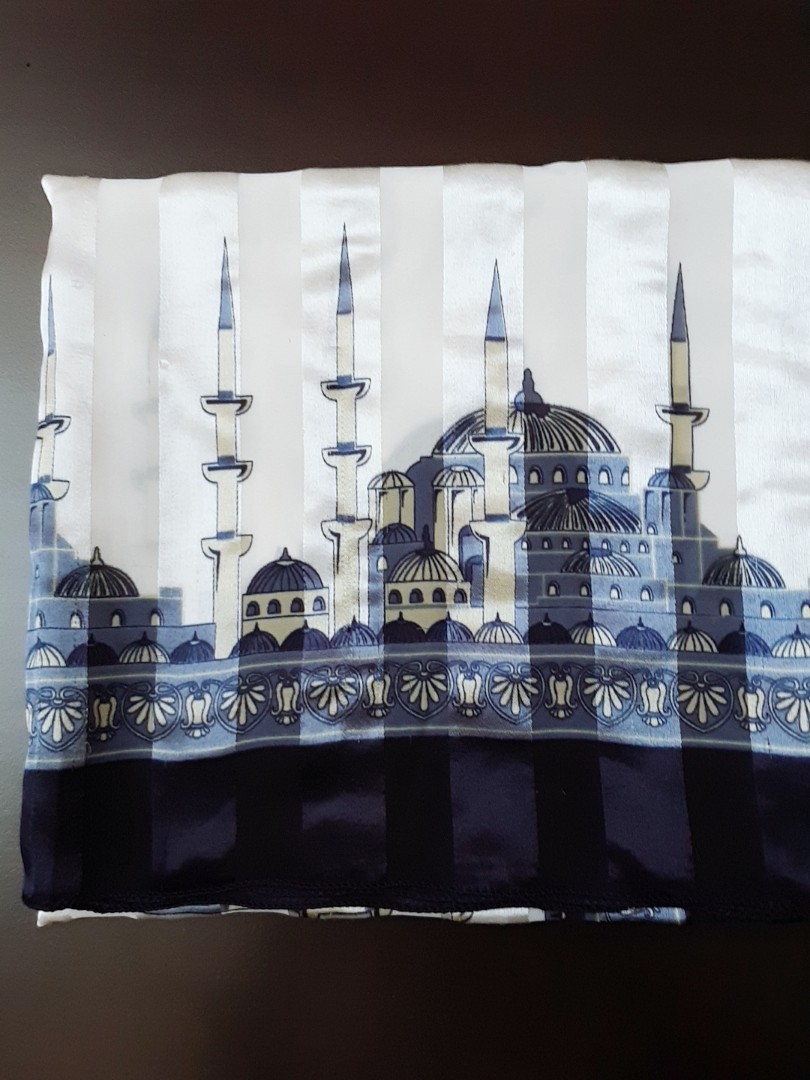 Jilbab Hijab Motif Masjid Warna Biru Putih Women S Fashion Muslim